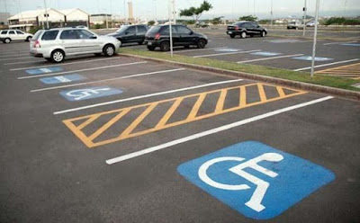 As vagas especiais, em shoppings, vias públicas, estacionamentos, supermercados, entre outros, são as marcadas com o símbolo de deficiência.