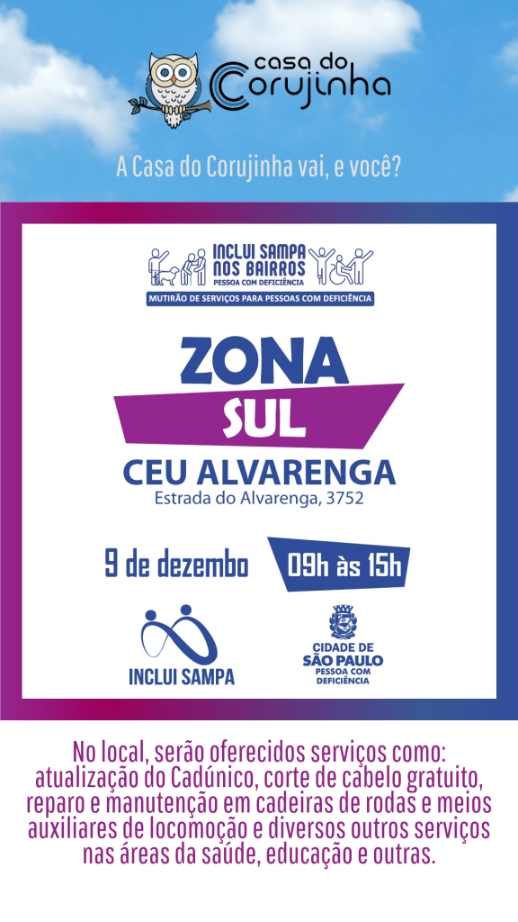 A próxima edição do projeto vai acontecer no dia 09 de dezembro, das 9h às 15h, no CEU Alvarenga, localizado na Estrada do Alvarenga, 3752