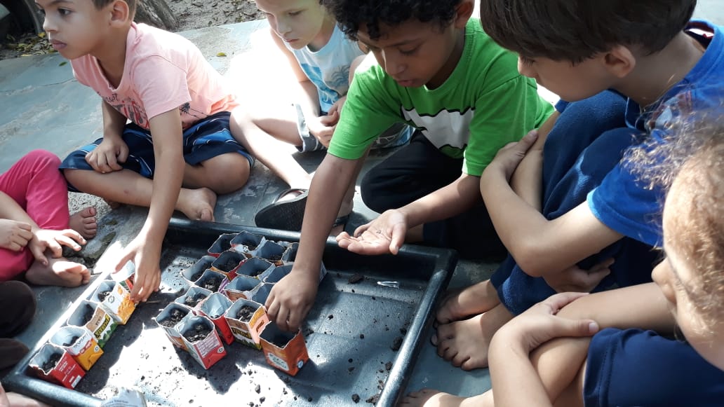 Recebem conhecimento da natureza, tocando, visualizando e comendo o que plantam.